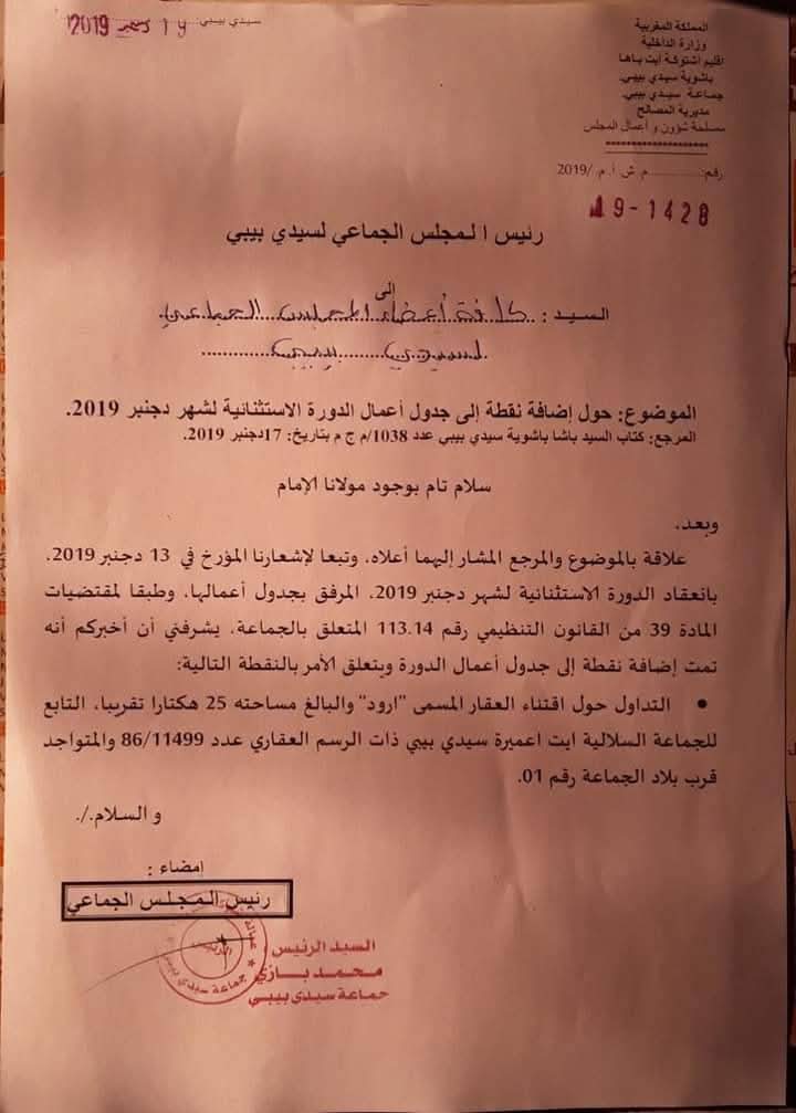 وقبل إدراج نقطة اقتناء العقار من طرف السلطة في جدول الأعمال، كانت هناك أحاديث متداولة عن محاولة بعض أعضاء المجلس الجماعي قسمة هذا العقار بينهم. وهو ما دفع بالباشا السابق، ممثل السلطة المحلية آنذاك، إلى إدراج هذه النقطة في جدول الأعمال، بهدف “قطع الطريق على الرئيس وأعوانه” لمنعهم من “تقسيم وبيع” هذا العقار.