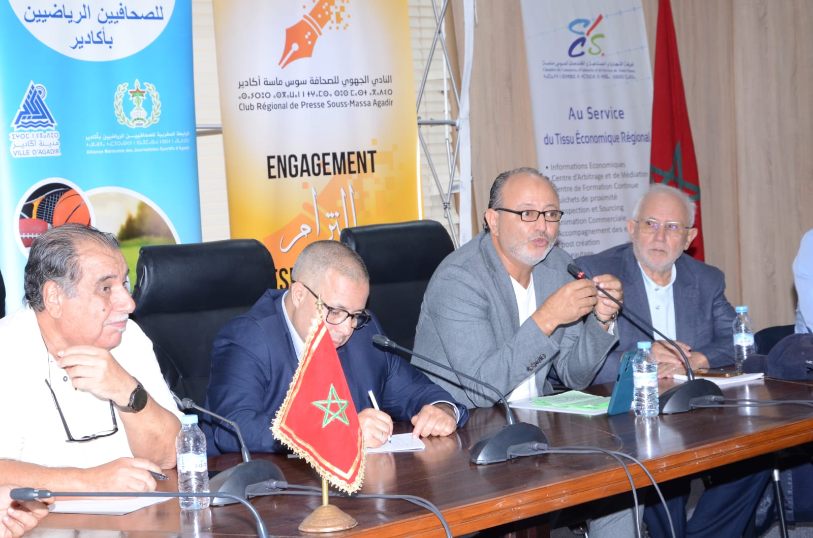 جريا على عادتها السنوية وتنفيذا لبرنامجها المسطر، وتخليدا لذكرى ربع قرن، على تأسيس الرابطة المغربية للصحافيين الرياضيين، وبمناسبة افتتاح موسمها الرياضي الجديد 2025/2026، نظمت الرابطة المغربية للصحافيين الرياضيين بمدينة أكادير، بشراكة مع النادي الجهوي للصحافة بأكادير، وجماعة أكادير، يوم السبت 11 أكتوبر 2025، بقاعة الاجتماعات لغرفة التجارة والصناعة والخدمات لجهة سوس ماسة، محاضرة افتتاحية تحت عنوان: “التظاهرات الرياضية الكبرى: فرص التنمية وأثرها الإيجابي على المجتمع والاقتصاد .. كأس أمم إفريقيا 2025 ومونديال 2030 نموذجا”. وتناول الدكتور عبد الرحيم غريب، الأستاذ الباحث في الحكامة الرياضية بجامعة “الحسن الثاني”، بالدرس والتحليل هذا الموضوع، بعرض قيم، وسط حضور وازن، لفعاليات رياضية وجامعية وإعلامية محلية ووطنية.