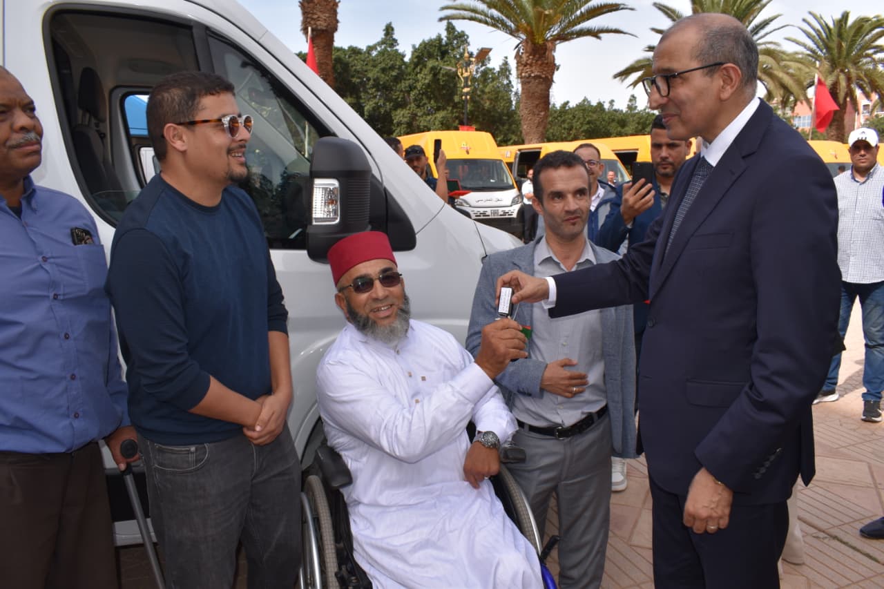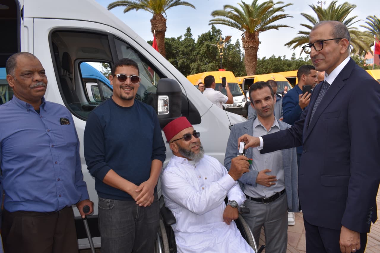 وفي إطار دعم النقل الاجتماعي لعدد من الفئات الهشة بالإقليم، تم توزيع 3 حافلات لنقل الأشخاص ذوي الاحتياجات الخاصة، وهو مشروع رُصد له غلاف مالي قدره 930 ألف درهم، وممول في إطار برامج المبادرة الوطنية للتنمية البشرية الهادفة إلى النهوض بأوضاع المستفيدين من مراكز ذوي الاحتياجات الخاصة، ودعم الخدمات النبيلة التي تقدمها هذه المؤسسات الاجتماعية.