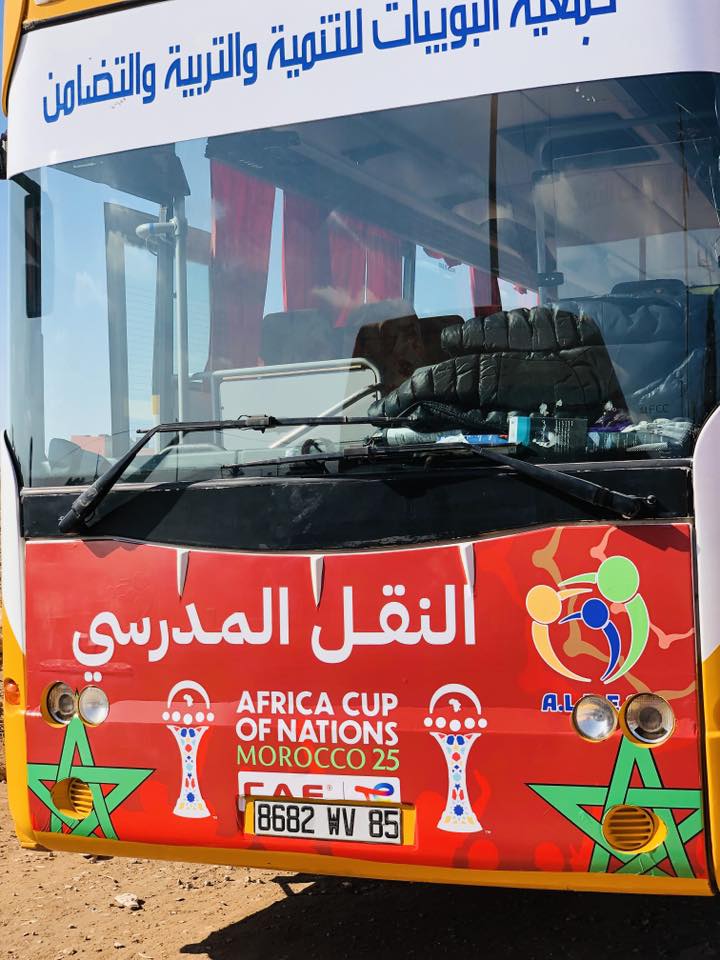 وفي هذا السياق، جسّدت جمعية البويبات للتنمية والتربية والتضامن نموذجًا عمليًا لهذا الانخراط، حيث بادرت، تماشيًا مع مخرجات اللقاء العاملي الذي شدد على ضرورة تعبئة مختلف الفاعلين، إلى المساهمة الفعلية في الترويج للبطولة وتعزيز أجواء التعبئة الوطنية. وقد تجلى ذلك من خلال تزيين حافلات النقل المدرسي التابعة للجمعية بالهوية البصرية الرسمية لكأس الأمم الإفريقية والأعلام الوطنية، في خطوة رمزية لكنها ذات دلالة قوية على مستوى الوعي بأهمية الحدث وحجم الرهان المرتبط به.