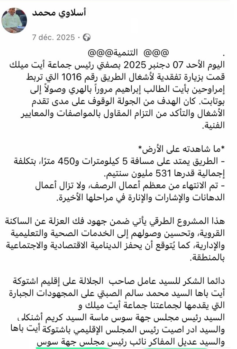 إن ما وقع بالطريق 1016 لا يجب أن يُنظر إليه كحادث عابر، بل كاختبار حقيقي لنجاعة الحكامة المحلية، ولمدى جدية المؤسسات في حماية المال العام وصون حق المواطن القروي في بنية تحتية آمنة ومستدامة.