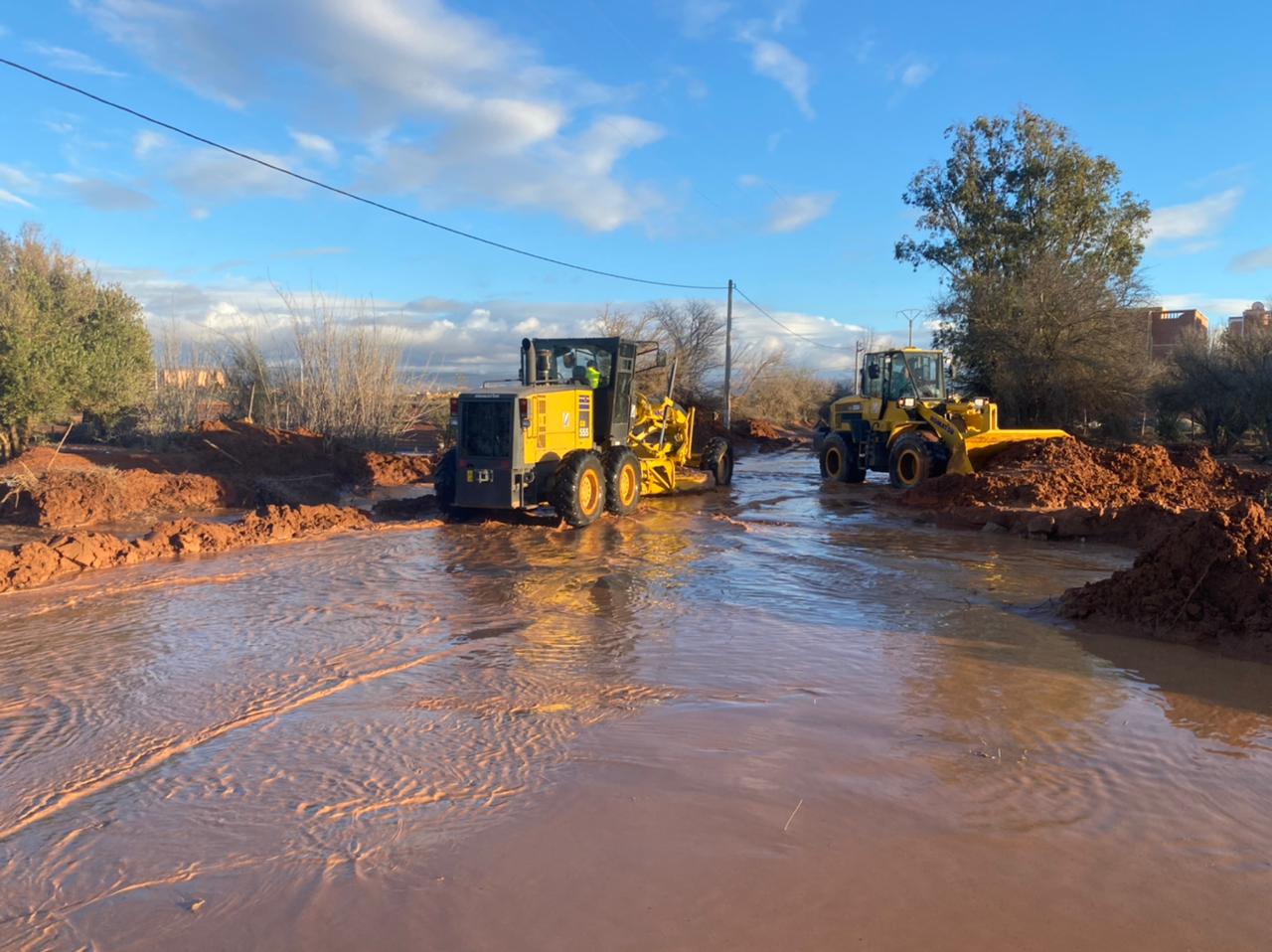 الطريق الجهوية رقم 115: نجحت الفرق التقنية في فتح الطريق في ثلاث نقاط (الكلم 50، 59، و74) لأربع مرات متتالية، متحدية توالي التساقطات وارتفاع منسوب المياه لضمان عدم عزل المنطقة.