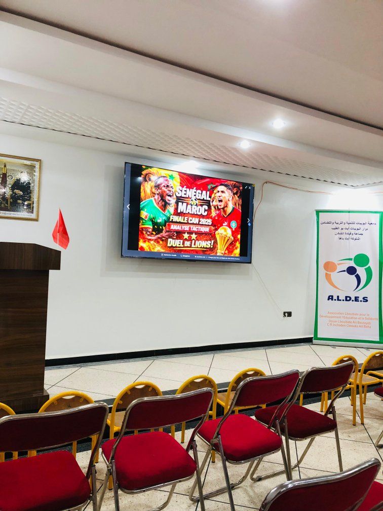 وفي أجواء مفعمة بالحماس وروح الانتماء الوطني، قامت الجمعية — التي تُعد إحدى المنظمات الرائدة في العمل الجمعوي إقليميًا — بتجهيز قاعة كبرى بمقرها، خُصصت لاستقبال ساكنة المنطقة لمتابعة المباراة النهائية التي ستجمع المنتخب الوطني المغربي بنظيره السنغالي، مساء يوم غد، ضمن نهائيات العرس الإفريقي.