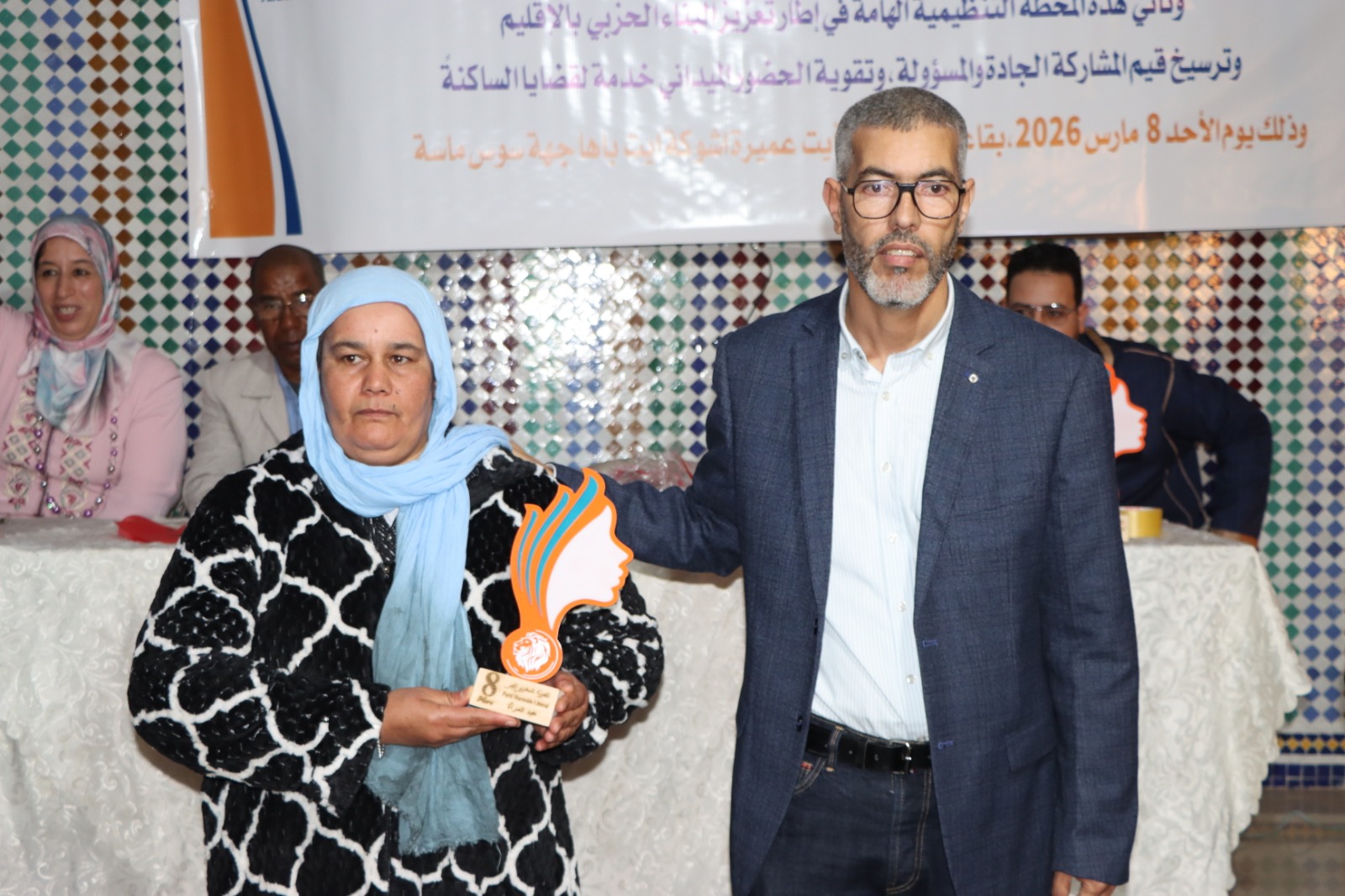 ولم يخلُ المؤتمر من أبعاد رمزية واجتماعية، إذ تزامن تنظيمه مع تخليد اليوم العالمي للمرأة، حيث تم خلاله تكريم عدد من الفعاليات النسائية بالإقليم تقديرًا لإسهاماتهن في الحياة المجتمعية، في خطوة اعتبرها المنظمون تعبيرًا عن التزام الحزب بتعزيز حضور المرأة في العمل السياسي والمجتمعي.