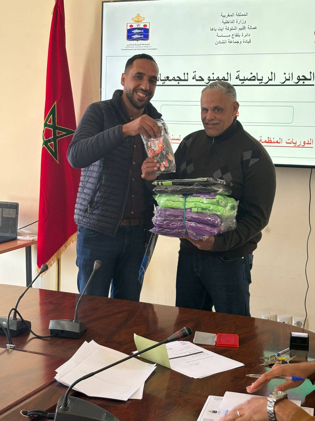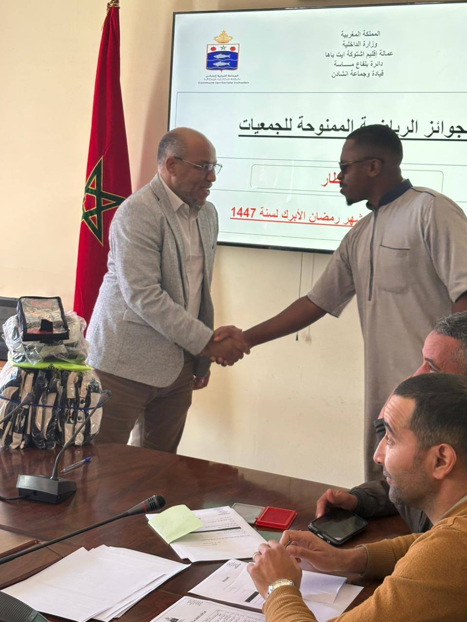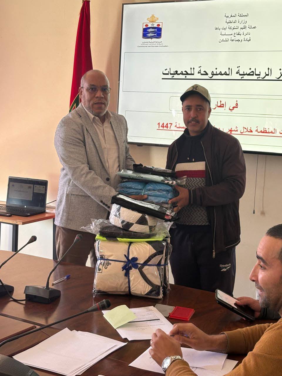 في إطار دعم الأنشطة الرياضية المحلية وتشجيع الشباب على ممارسة الرياضة، احتضن مقر جماعة إنشادن، زوال اليوم الأربعاء 28 رمضان الأبرك، حفل توزيع مجموعة من اللوازم والجوائز الرياضية لفائدة الجمعيات المنظمة للدوريات الكروية الرمضانية.