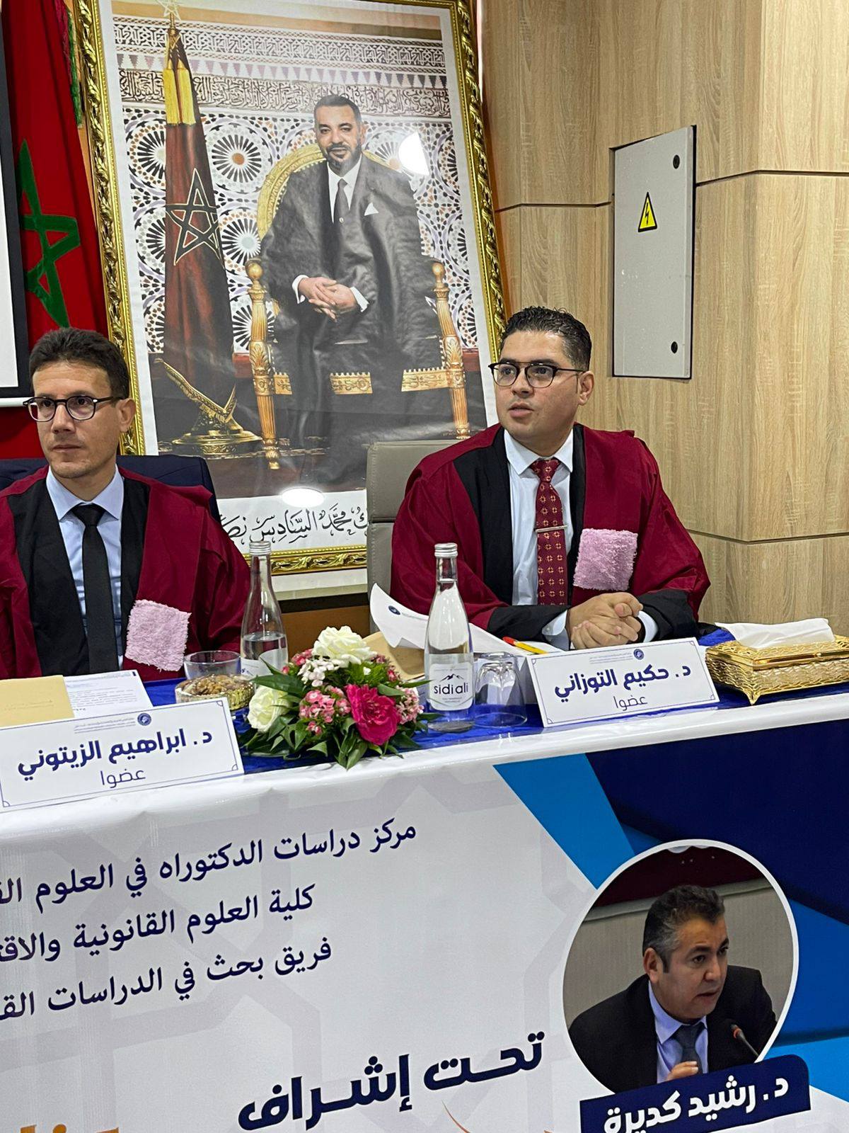 وقد جرت أطوار هذه المناقشة أمام لجنة علمية رفيعة المستوى، ضمت قامات أكاديمية مشهود لها بالكفاءة في الحقل القانوني والسياسي، وتكونت من الدكتور رشيد كديرة، د عبداللطيف بكور ، د محمد غالي ، د  حكيم التوزاني ، د  إبراهيم الزيتوني ، و د جواد الرباع