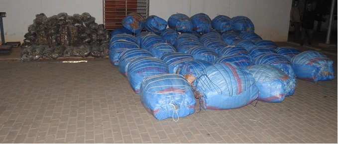 أما العملية الثانية فقد تم تنفيذها بالمنطقة القروية “كنان زمامرة” بضواحي قلعة السراغنة، حيث مكنت من توقيف سيارة نفعية على متنها شخصان يشكل أحدهما موضوع عدة مذكرات بحث على الصعيد الوطني، قبل العثور بحوزتهما على 476 كيلوغراما من مخدر الكيف و 105 كيلوغراما من التبغ المهرب، فضلا عن 700 غراما من الكوكايين وكيلوغرام و700 غراما من مخدر الشيرا، وكذا بندقية صيد غير مرخصة و13 خرطوشة.