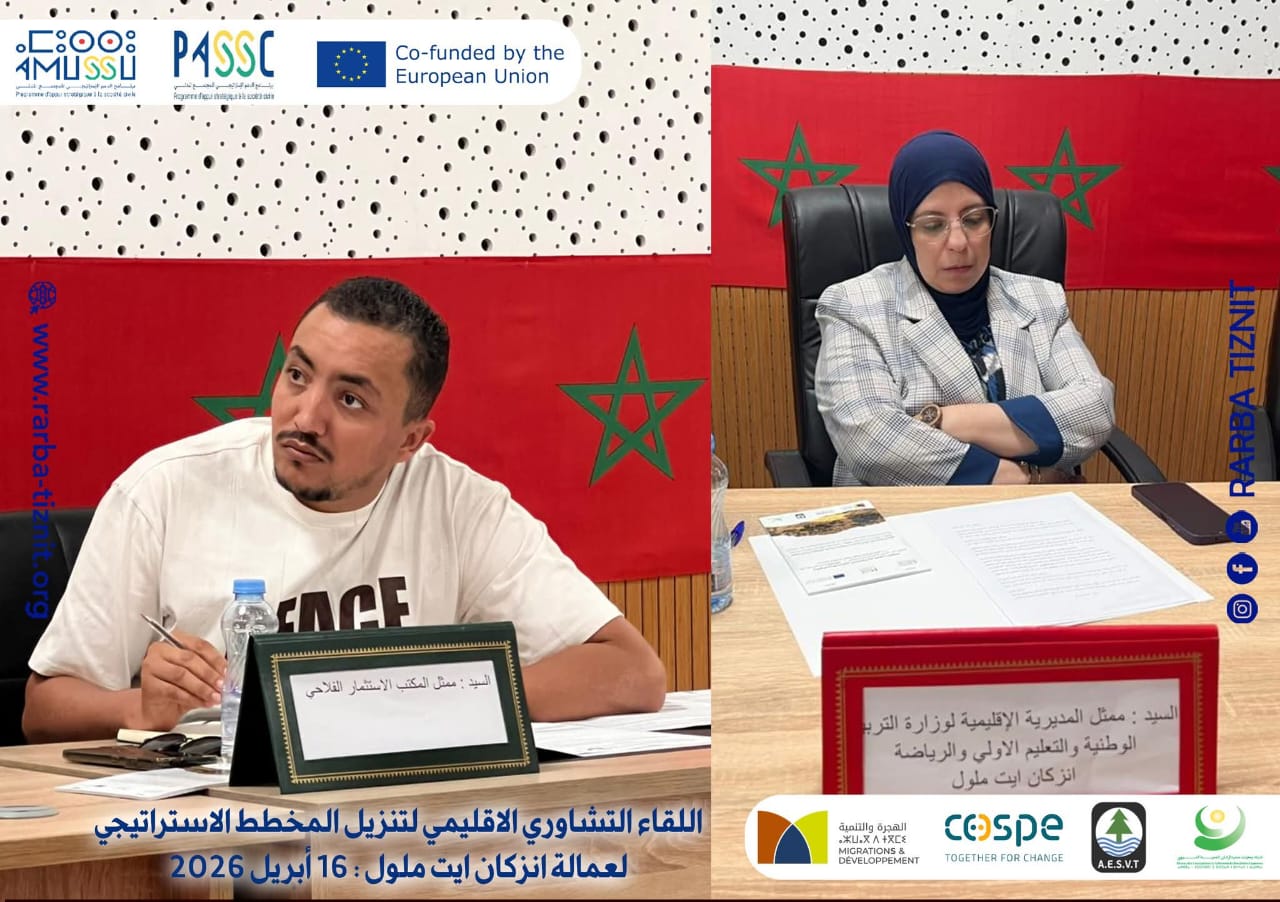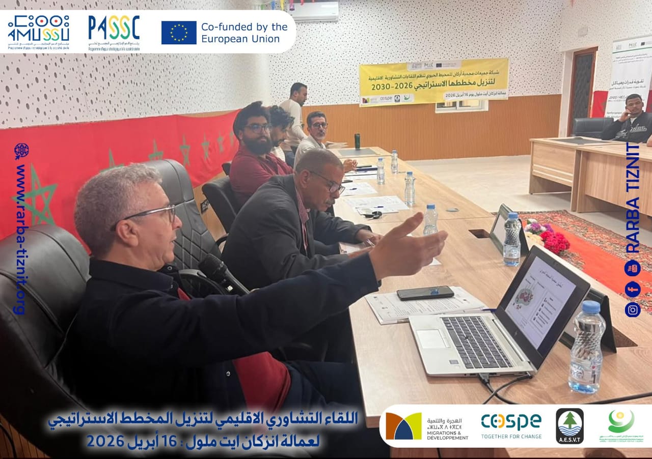 احتضنت دار الشباب بجماعة أولاد داحو بعمالة إنزكان آيت ملول، يوم الخميس 16 أبريل 2026، أشغال المحطة الأولى من اللقاءات التشاورية لتنزيل المخطط الاستراتيجي للشبكة 2026-2030، وذلك في إطار مشروع “تقوية قدرات وهياكل الشبكة “، الذي تنفذه شبكة جمعيات محمية أركان للمحيط الحيوي، في إطار مشروع AMUSSU: «تعزيز قدرة المجتمع المدني بالمغرب على الفعل من أجل الحكامة الجيدة والبيئة والمناخ»، والمندرج ضمن برنامج الدعم الاستراتيجي للمجتمع المدني بالمغرب (PASSC)، الممول من طرف الاتحاد الأوروبي، والذي يشرف عليه ائتلاف يضم منظمة الهجرة والتنمية (M&D)، وجمعية مدرسي علوم الحياة والأرض (AESVT)، ومنظمة التعاون من أجل تنمية البلدان الناشئة (COSPE)، بمشاركة ممثلين عن مؤسسات عمومية، وفاعلين جمعويين، ومهتمين بقضايا التنمية المستدامة بمجال محمية المحيط الحيوي للأركان.