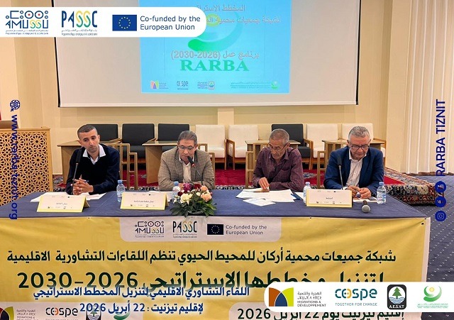 اختتمت بمدينة تيزنيت، زوال أمس الأربعاء 22 أبريل 2026، أشغال اللقاء التشاوري التكويني الذي نظمته المنسقية الإقليمية لشبكة جمعيات محمية المحيط الحيوي للأركان، وهو الموعد الذي يندرج ضمن مسار تنزيل المخطط الاستراتيجي للشبكة للفترة 2026-2030 بهدف صياغة برنامج عمل ترابي مندمج يستجيب لخصوصيات الإقليم. ويأتي هذا اللقاء في سياق مشروع “AMUSSU” الرامي إلى تعزيز قدرات المجتمع المدني في مجالات الحكامة البيئية والمناخ، بدعم من الاتحاد الأوروبي وبشراكة مع ائتلاف جمعوي يضم منظمة الهجرة والتنمية، وجمعية مدرسي علوم الحياة والأرض، ومنظمة “COSPE” الإيطالية.